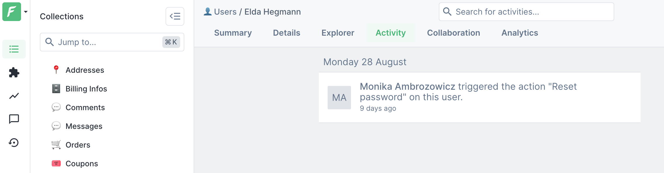 Customer Support is almost always teamwork that requires keeping in touch with other team members and logging different activities. Both are possible on Forest Admin thanks to two features: Collaboration and Activity.