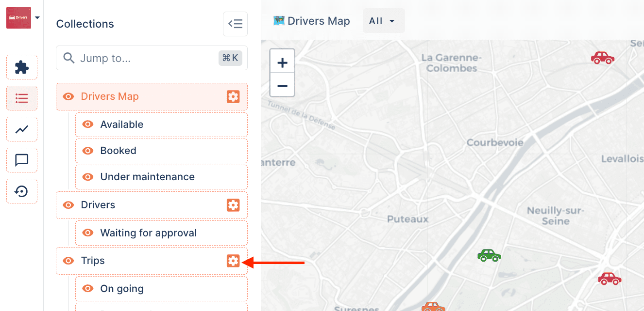 Next, we'll add a map of the idle drivers. This map is a Smart View which needs to be coded within the Smart View tab of the corresponding collection settings. If you're interested in such a view, check out this example.